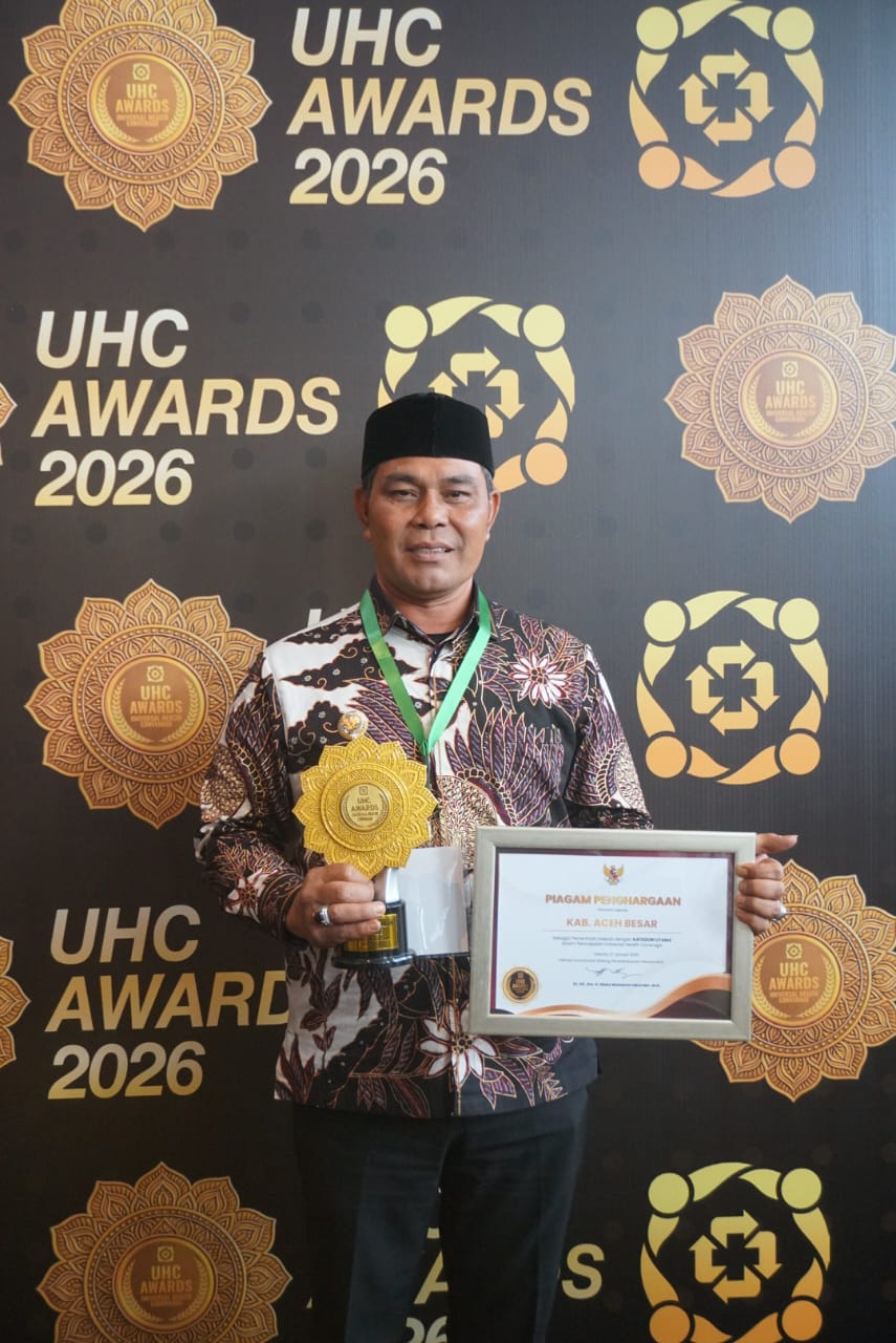 Penghargaan tersebut diterima langsung oleh Bupati Aceh Besar H. Muharram Idris (Syech Muharram) dari Direktur Utama BPJS Kesehatan, Ali Ghufron Mukti, dalam acara Penganugerahan UHC yang digelar di Jakarta International Expo (JIExpo) Kemayoran, Jakarta Pusat, Selasa (27/1/2026).