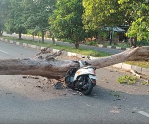 Pohon Tumbang di Jalan Bandara SIM, Pengendara Luka dan Motor Rusak