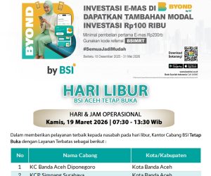 Banda Aceh — Menyambut libur panjang Idul Fitri 1447 Hijriah, Bank Syariah Indonesia (BSI) Regional […]