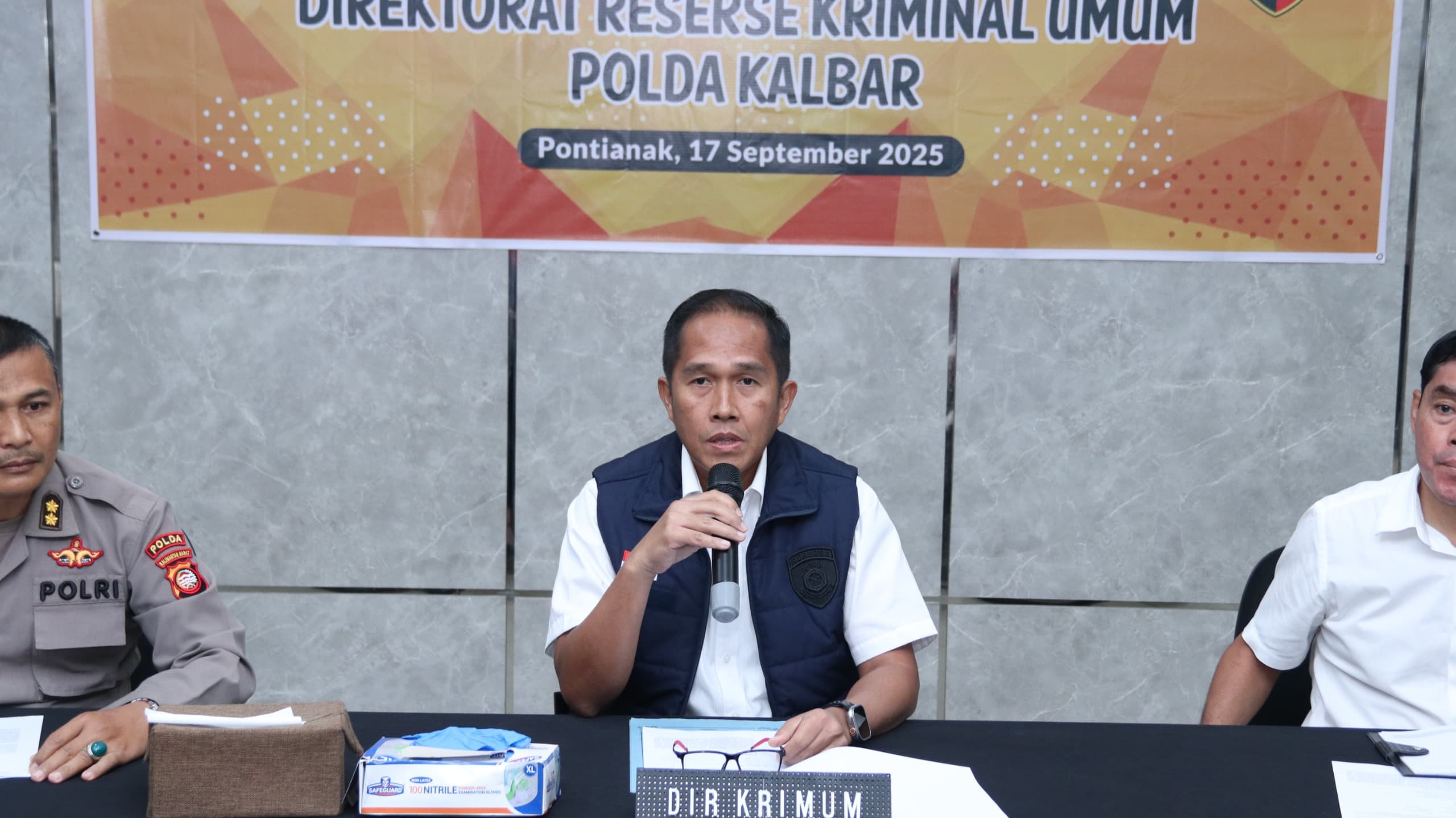 Konferensi Pers dipimpin oleh Ditreskrimum Polda Kalbar, Kombes Pol Raswin Bachtiar Sirait, S.H, S.I.K. M.Si didampingi oleh Kasubbid Penmas Bidhumas Polda Kalbar, AKBP Prinanto, dan Kasubdit Kamneg, Kompol Lely Suheri, S.H, M.M serta dihadiri oleh Para Awak Media baik Lokal maupun Media Nasional. (Rabu, 17/9/2025)