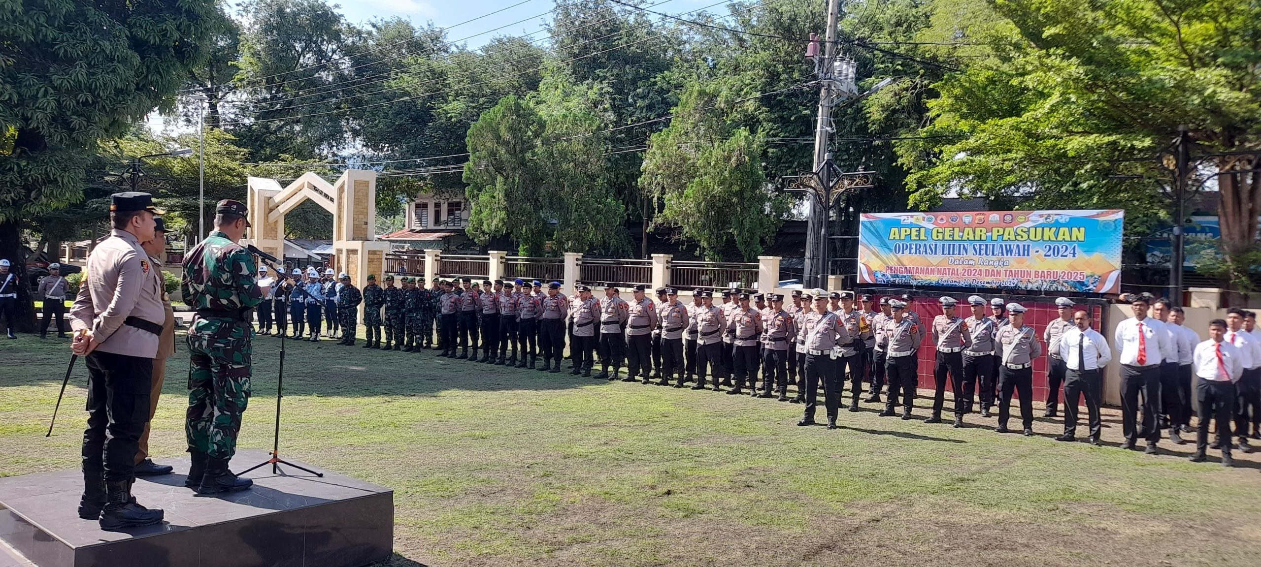 Kegiatan Apel Gelar Pasukan Operasi Lilin Seulawah 2024 dalam Rangka Pengamanan Natal 2024 dan Tahun 2025, bertindak sebagai Pemimpin Apel PJ. Walikota Sabang, Andri Norman. AP M.Si, Dandim 0112/Sabang, Letkol Kav Edi Purwanto S.I.P dan Kapolres Sabang, AKBP Erwan S.H.M.H, yang bertindak sebagai Komandan Apel KBO Lantas, Ipda Rahman Hakim dan diikuti oleh sejumlah Pejabat Instansi terkait beserta Personel dari TNI-POLRI, Satpol PP dan Basarnas.