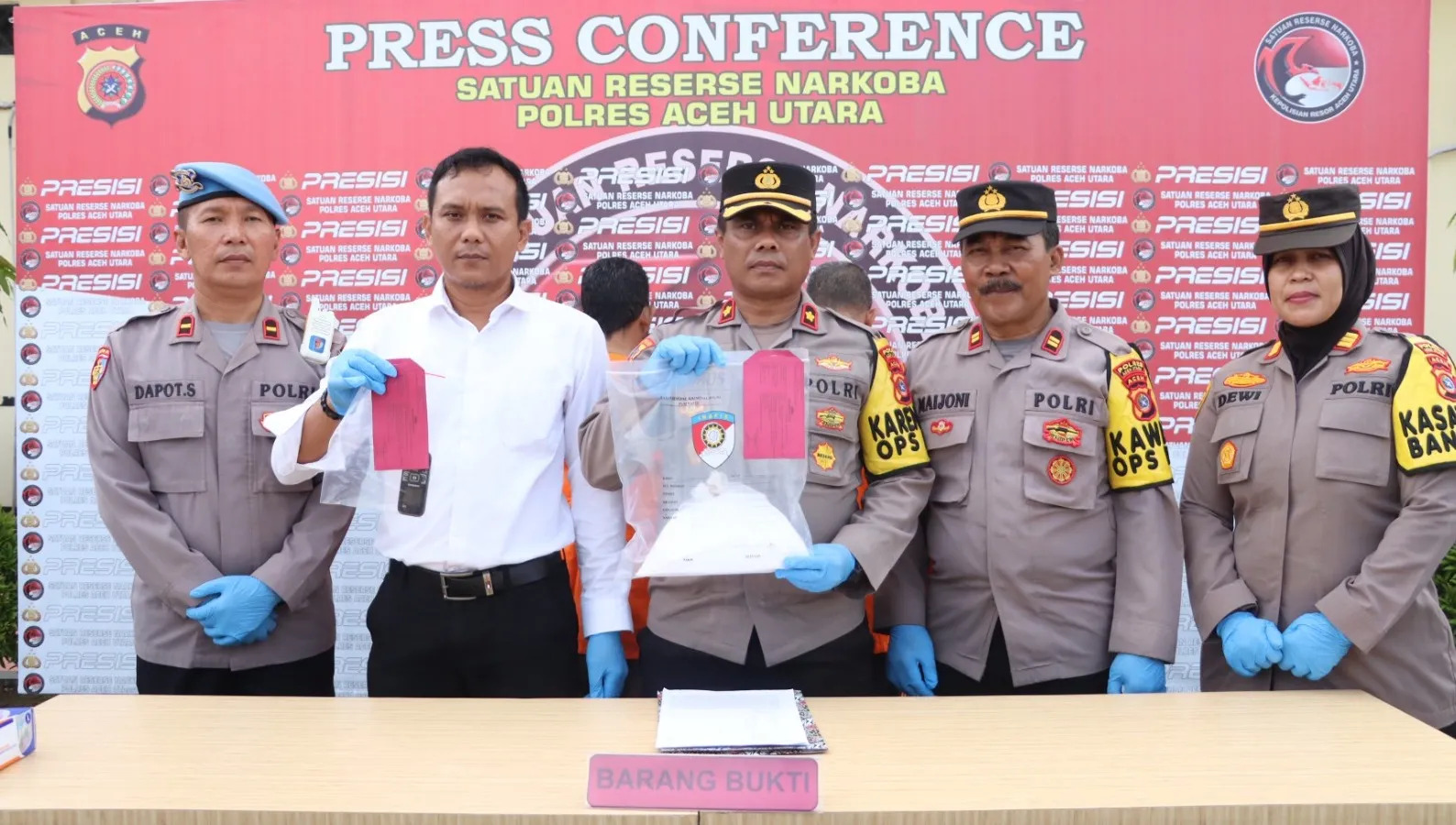 Aceh Utara – Polisi mengungkap peredaran serbuk putih diduga bahan baku obat keras tramadol di Kabupaten Aceh Utara. Dua pria yang disebut tengah melakukan transaksi di kawasan pantai Meunasah Baro, Muara Batu, Aceh Utara, pada 8 Oktober lalu, ditangkap.