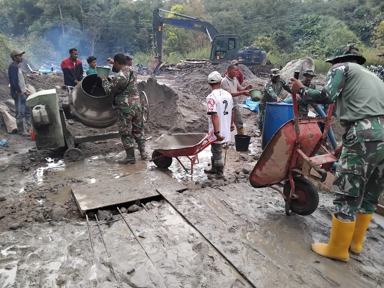 Tahap pengecoran yang berlangsung pada Senin (20/4/2026) tersebut tidak hanya menjadi tonggak penting dalam proses pembangunan, tetapi juga mencerminkan kuatnya kolaborasi antara personel TNI dan masyarakat setempat. Dengan semangat gotong royong, keduanya bahu-membahu menyelesaikan pekerjaan yang membutuhkan ketelitian tinggi ini.