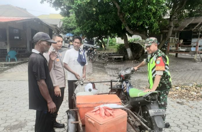 SABANG – Babinsa 07 Gampong Keuneukai Koramil 01/Sukajaya Kodim 0112/Sabang, Serma Hermansyah bersama Bhabinkamtibmas Gampong Keuneukai melaksanakan Komsos dengan Bapak Rusli warga Jurong Kulam yang berprofesi sebagai penjual ikan keliling bertempat di Gampong Keuneukai Kecamatan Sukamakmue Kota Sabang, Senin (23/10/2023).