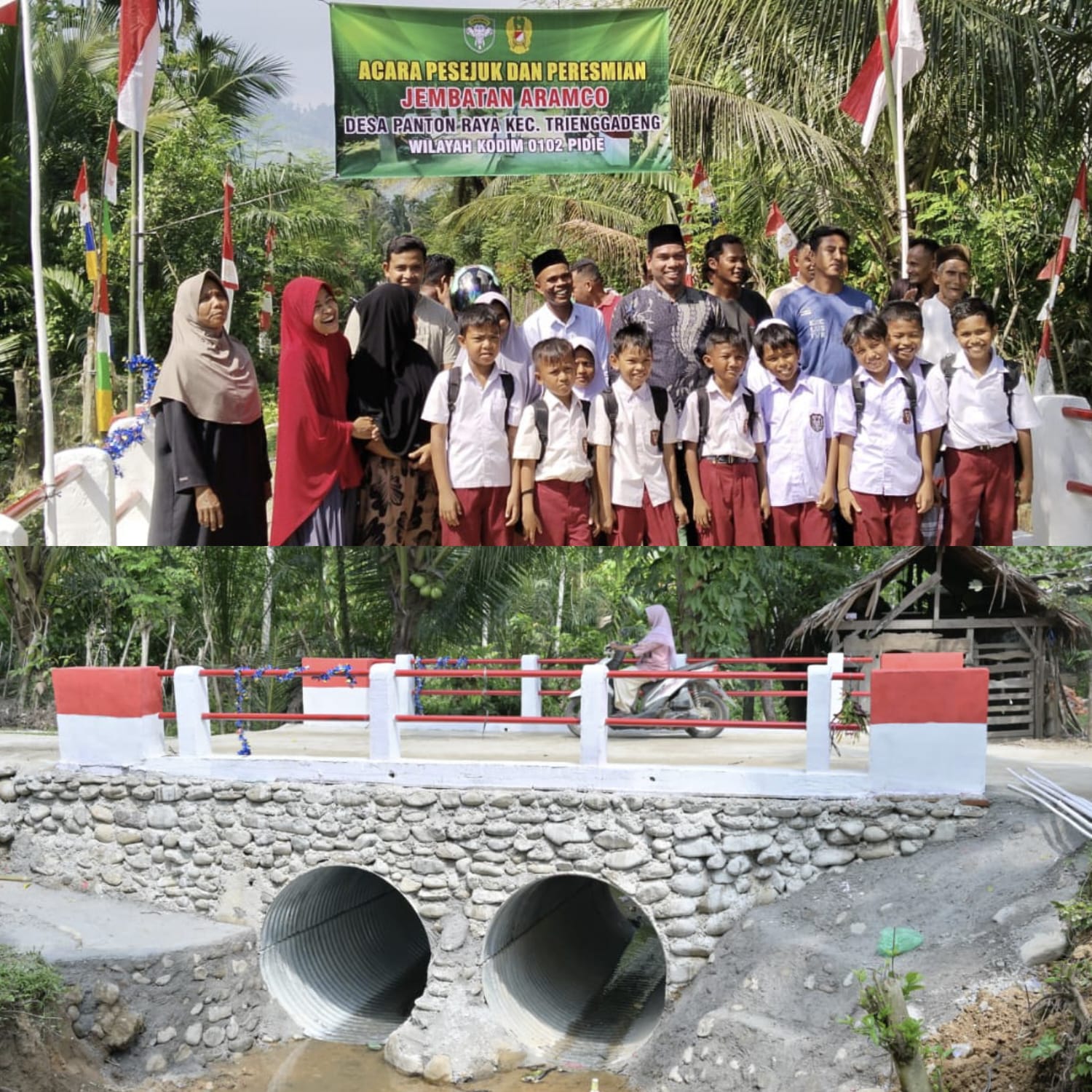 Komandan Kodim (Dandim) 0102/Pidie, Letkol Inf Abdul Hadi, melalui Danramil 18/Trenggadeng, Kapten Inf Dominggus Pardiara, menyampaikan bahwa pembangunan Jembatan Aramco dapat diselesaikan dalam waktu relatif singkat berkat kerja sama yang solid antara TNI, pemerintah, dan masyarakat, tanpa mengesampingkan kualitas konstruksi serta faktor keamanan.