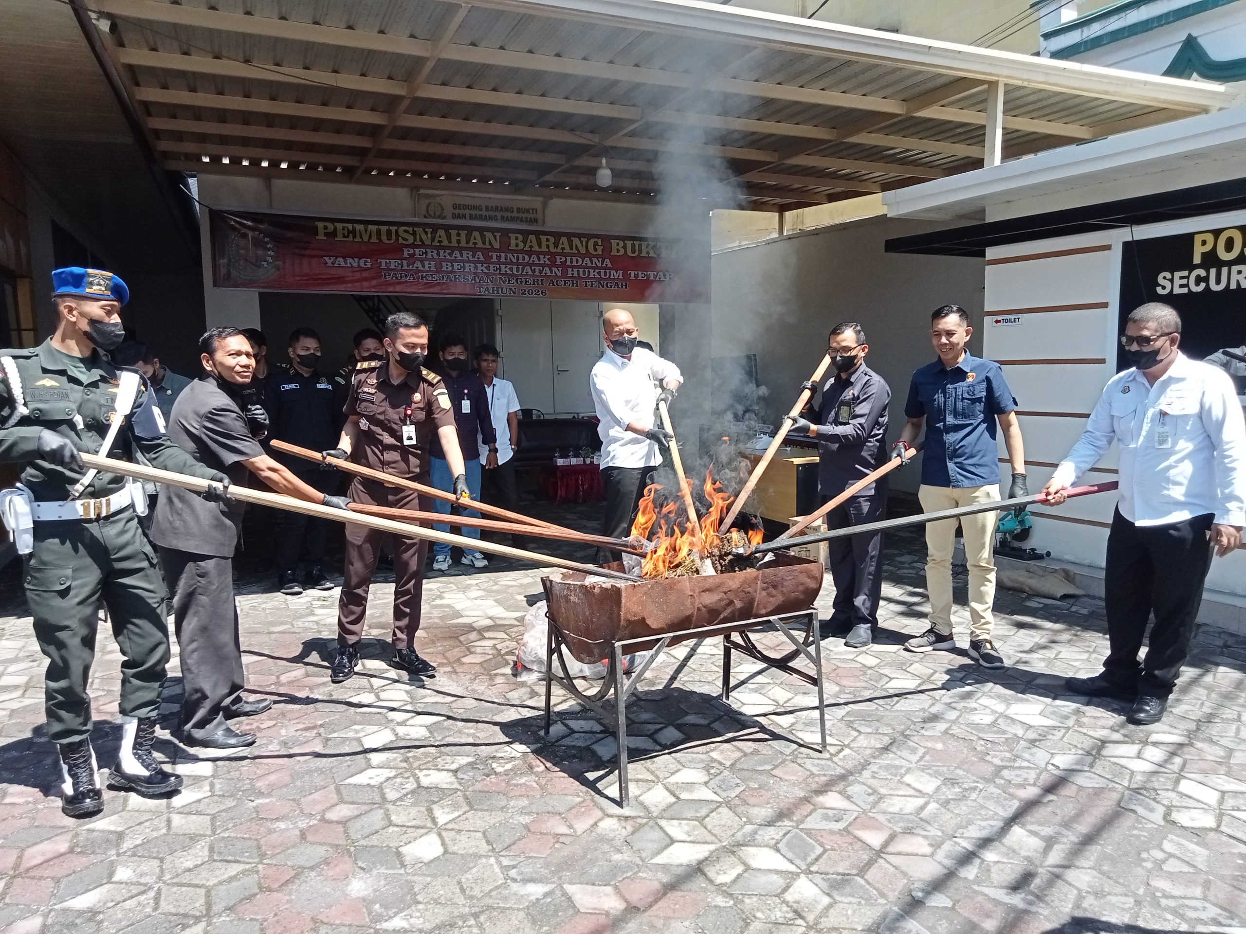 TAKENGON – Kejaksaan Negeri (Kejari) Aceh Tengah melakukan pemusnahan barang bukti (BB), di halaman kantor Kejari setempat, Rabu (22/04/2026).