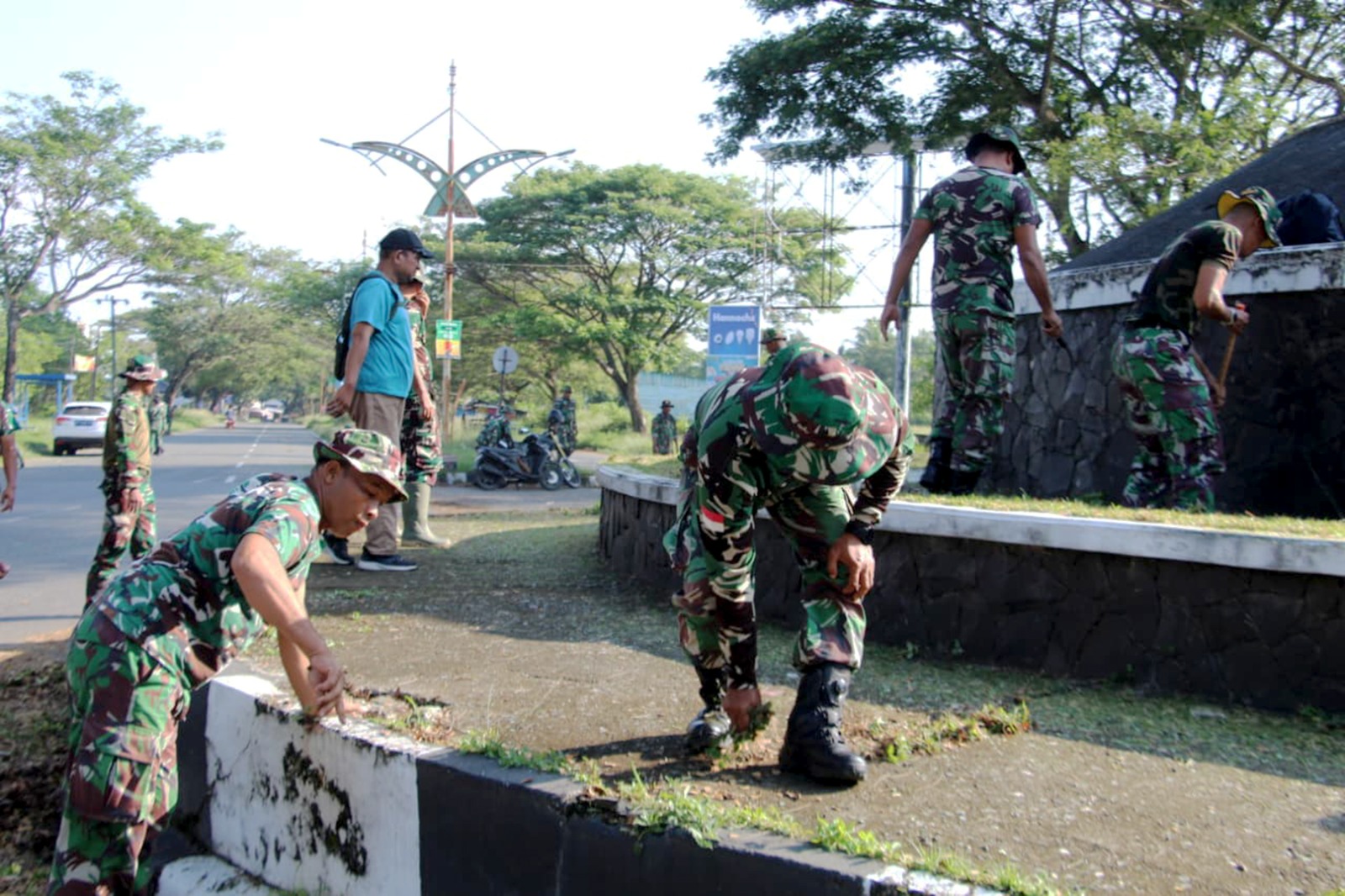 Kegiatan yang dimulai pukul 08.00 WIB hingga 11.30 WIB tersebut dipusatkan di sepanjang jalur dari Bundaran Keong hingga Bundaran SIM. Karya bakti ini dipimpin langsung oleh Danramil 12/Montasik Kapten Cke Ratno Timur Siregar dan melibatkan berbagai unsur, terdiri dari 96 personel TNI AD, 5 personel Dinas Kebersihan, serta 26 orang masyarakat setempat.