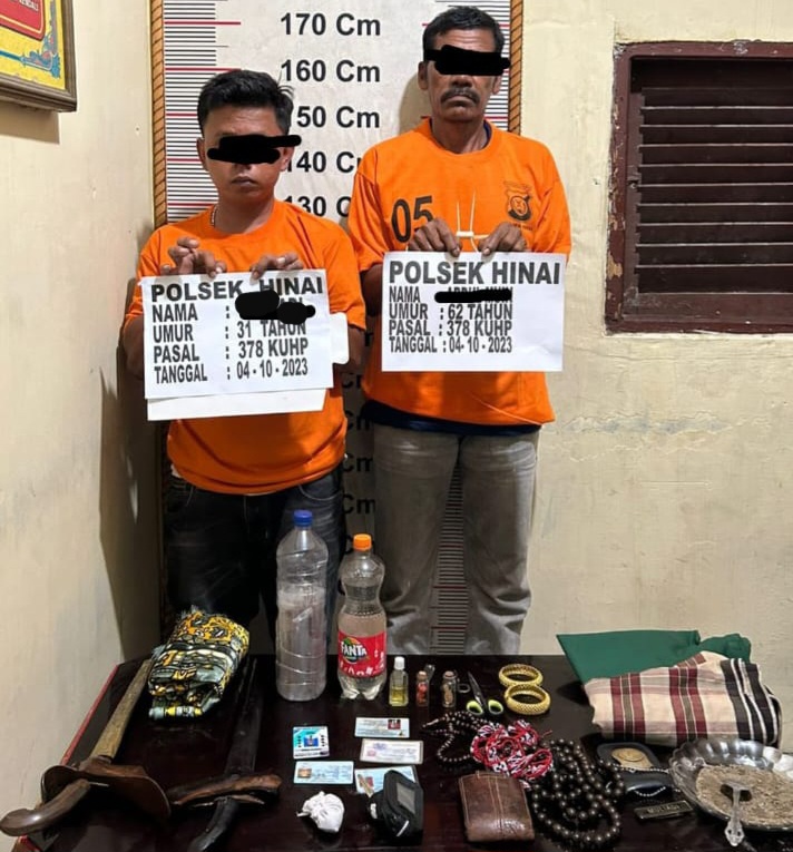 2 (dua) dukun palsu pengganda uang asal Kabupaten Batubara, ditangkap tim Reskrim Polsek Hinai, Polres Langkat pada Kamis (5/10) kemarin.