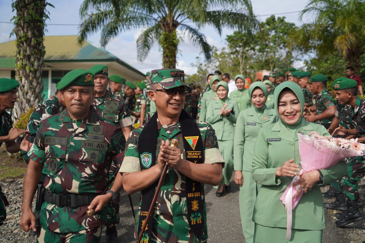 Nagan Raya – Panglima Komando Daerah Militer Iskandar Muda (Pangdam IM), Mayor Jenderal TNI Joko Hadi Susilo, S.I.P., bersama Ketua Persit Kartika Chandra Kirana Daerah Iskandar Muda, Ny. Tri Joko Hadi Susilo, melaksanakan kunjungan kerja ke Batalyon Infanteri Teritorial Pembangunan (Yonif TP) 856/Satria Bumi Sakti, Kamis (25/9/2025).