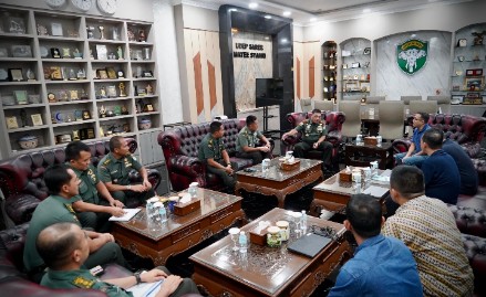 Banda Aceh – Panglima Komando Daerah Militer Iskandar Muda (Pangdam IM), Mayor Jenderal TNI Niko Fahrizal, M.Tr.(Han), menerima audiensi dari Business Unit Manager PT. Indolok Bakti Utama, Bapak Hartono Limsky, beserta rombongan di ruang kerjanya pada Kamis (9/1/2025).
