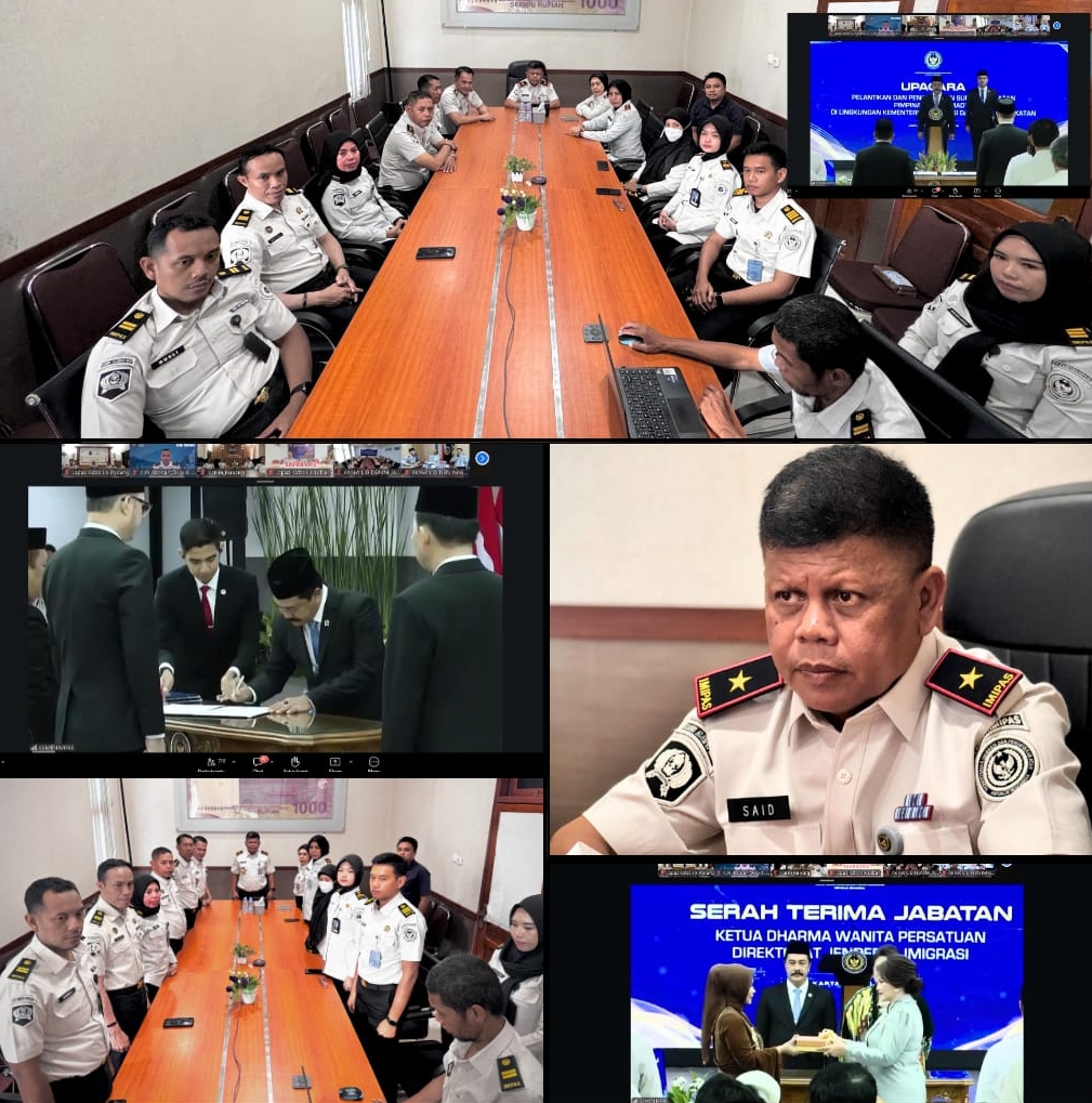 Ternate – Kantor Wilayah Direktorat Jenderal Pemasyarakatan (Ditjenpas) Maluku Utara turut menyaksikan secara virtual pelantikan dan pengambilan sumpah jabatan Pimpinan Tinggi Madya di lingkungan Kementerian Imigrasi dan Pemasyarakatan (Kemenimipas), Rabu (1/4/2026).