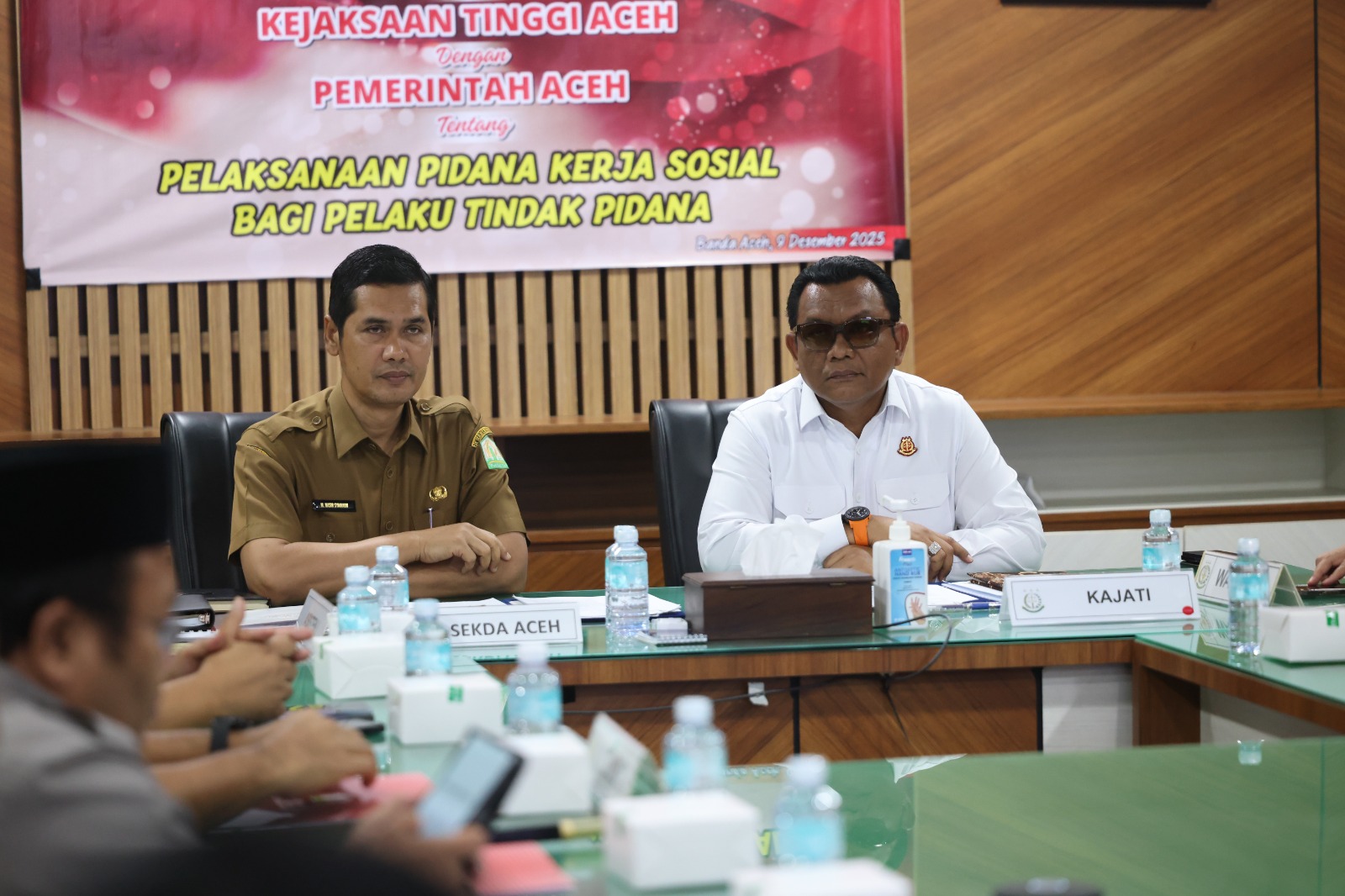 BANDA ACEH – Pemerintah Aceh bersama Kejaksaan Tinggi Aceh menandatangani Nota Kesepakatan pelaksanaan pidana kerja sosial bagi pelaku tindak pidana, Selasa, 9 Desember 2025, di Ruang Rapat Sekda Aceh. Acara tersebut dipimpin Sekda Aceh, M. Nasir, mewakili Gubernur Aceh Muzakir Manaf, dan dihadiri Kepala Kejaksaan Tinggi Aceh Yudi Triadi, Wakil Kepala Kejaksaan Tinggi Aceh Y. Erry Pudyanto Marwantono, serta jajaran SKPA terkait dan para asisten Sekda Aceh.