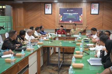 Banda Aceh – Pelaksana Tugas Sekretaris Daerah (Plt Sekda) Aceh, M. Nasir, menerima audiensi dari Panitia Besar Pekan Olahraga Aceh (PORA) XV Tahun 2026 Kabupaten Aceh Jaya yang dipimpin langsung oleh Bupati Aceh Jaya, Safwandi. Pertemuan berlangsung di ruang rapat Sekda Aceh, Kamis, 22 Mei 2025.