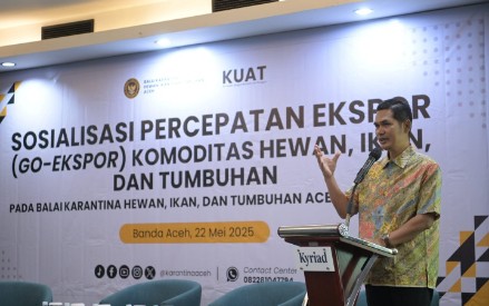 Hal tersebut disampaikan oleh Plt Sekretaris Daerah Aceh M Nasir, dalam sambutannya pada Sosialisasi Percepatan Ekspor (Go-Ekspor) Komoditas Hewan, Ikan dan tumbuhan, di Aula Kyriad Muraya Hotel, Kamis (22/5/2025).