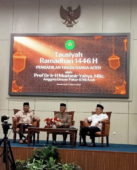 Tausyiah Ramadhan disampaikan oleh Anggota Dewan Pakar ICMI Aceh, Prof Dr Ir H Mustanir Yahya, MSc, Guru Besar Kimia Organik di Fakultas MIPA Universitas Syiah Kuala Banda Aceh.