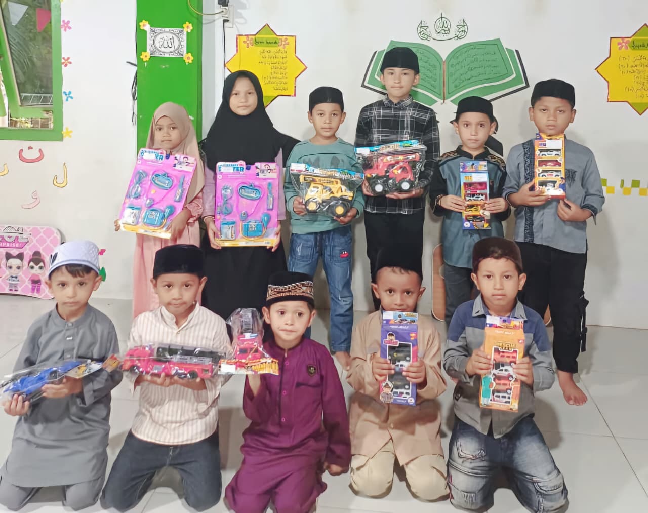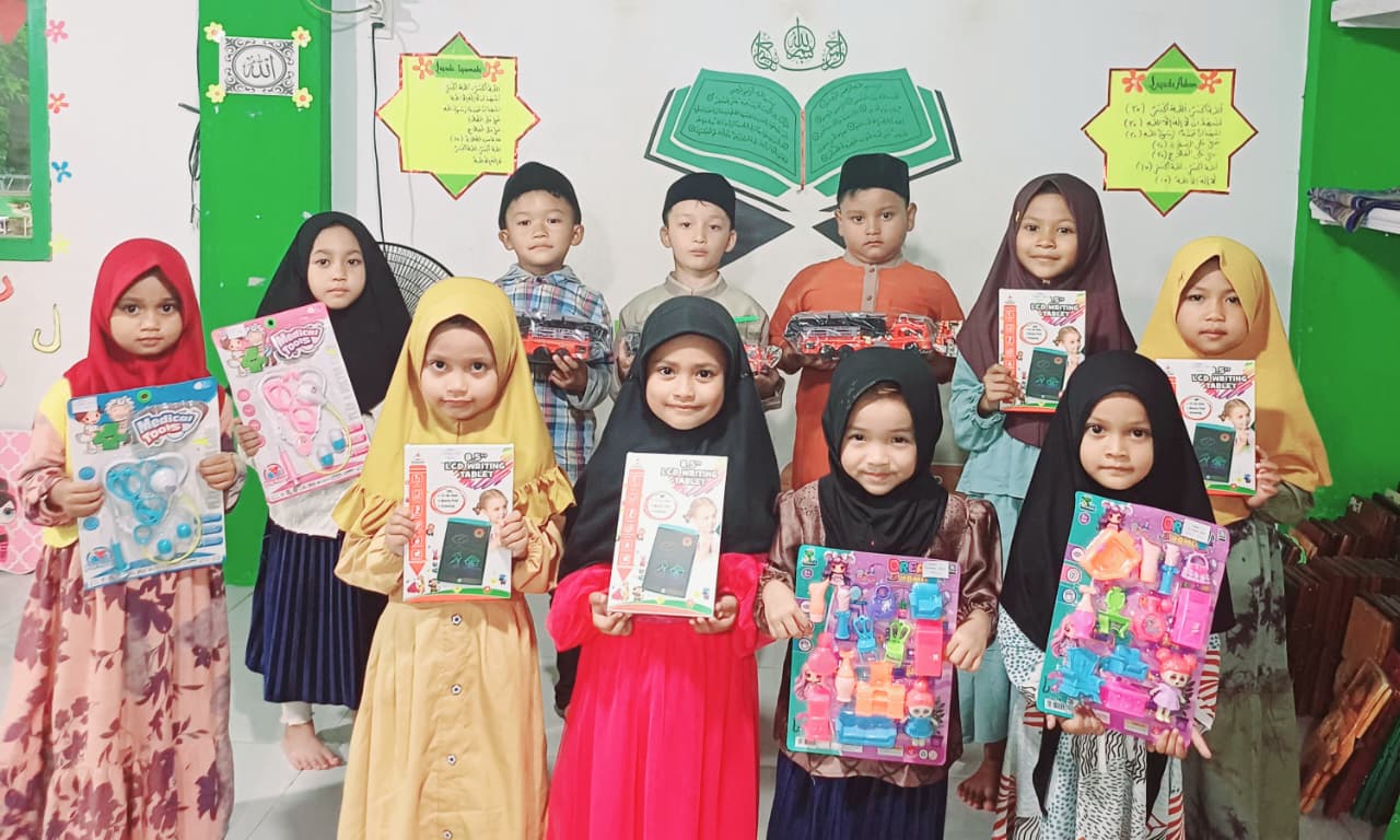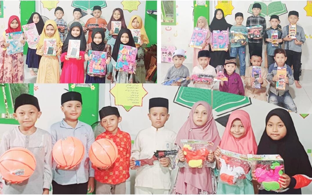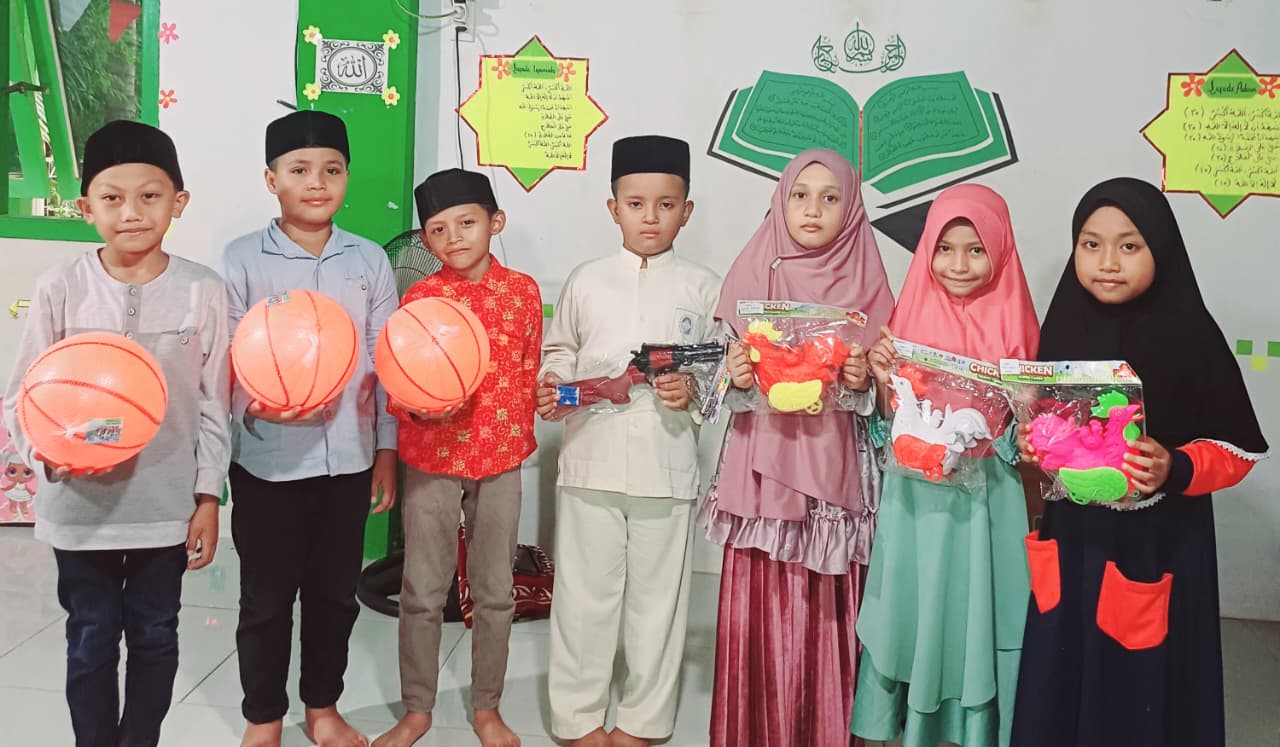 “Hadiah ini memang sederhana, tapi bisa memberi kebahagiaan dan memotivasi para santri untuk terus berprestasi,” ujar Uning saat menyerahkan hadiah.