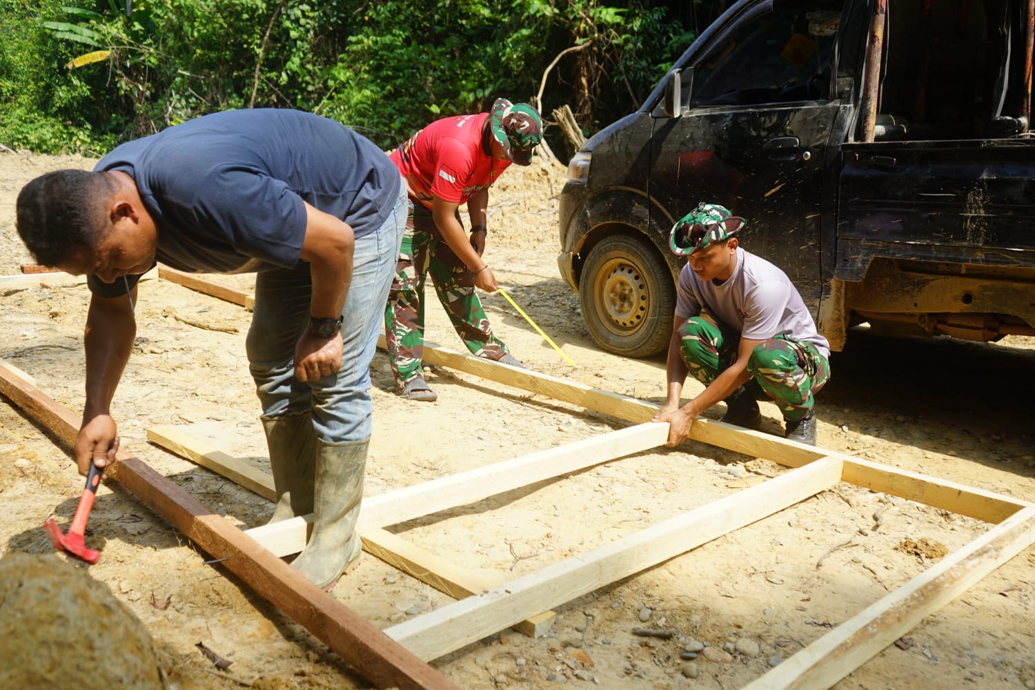 “Hari ini kita fokus membuat papan mal di titik sasaran pembangunan pelat beton. Setelah ini, pekerjaan akan dilanjutkan ke tahap pengecoran. Kami optimis seluruh proses dapat berjalan sesuai target,” tambah Koptu Rendi.