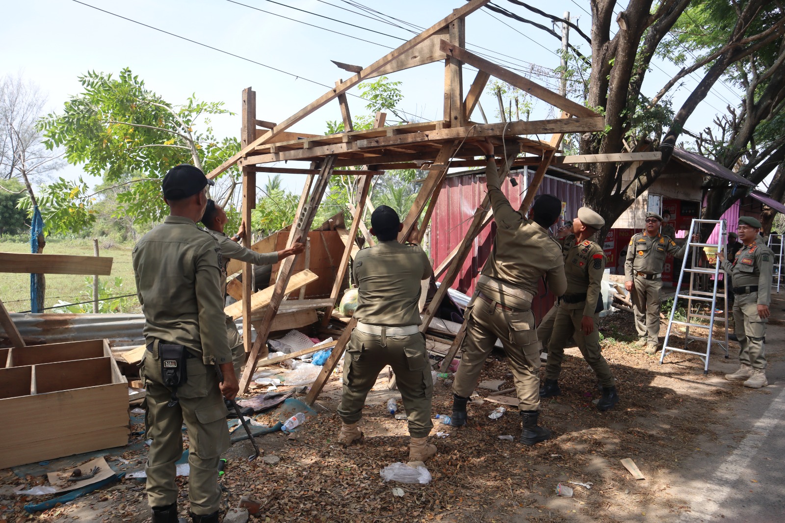 Dalam pelaksanaannya, petugas melakukan pembongkaran terhadap berbagai jenis bangunan sederhana seperti lapak kayu, terpal, dan konstruksi lainnya. Selain itu, pedagang juga diarahkan agar tidak kembali mendirikan lapak di lokasi yang telah ditertibkan.