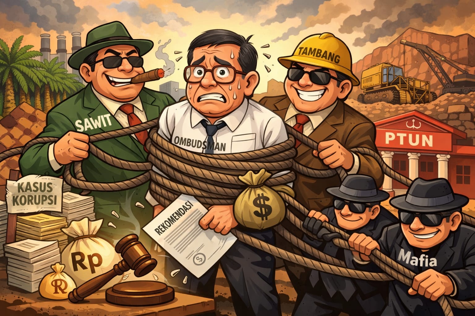 Kasus ekspor crude palm oil (CPO) memperjelas persoalan ini. Nama-nama besar seperti Wilmar Group, Permata Hijau Group, dan Musim Mas Group terseret dalam pusaran perkara. Ketiganya diduga memanfaatkan rekomendasi Ombudsman sebagai dasar menggugat kebijakan pemerintah di peradilan tata usaha negara. Taruhannya bukan kecil, potensi kerugian negara mencapai belasan triliun rupiah, sekaligus terciptanya preseden yang melemahkan posisi negara di hadapan kekuatan modal.